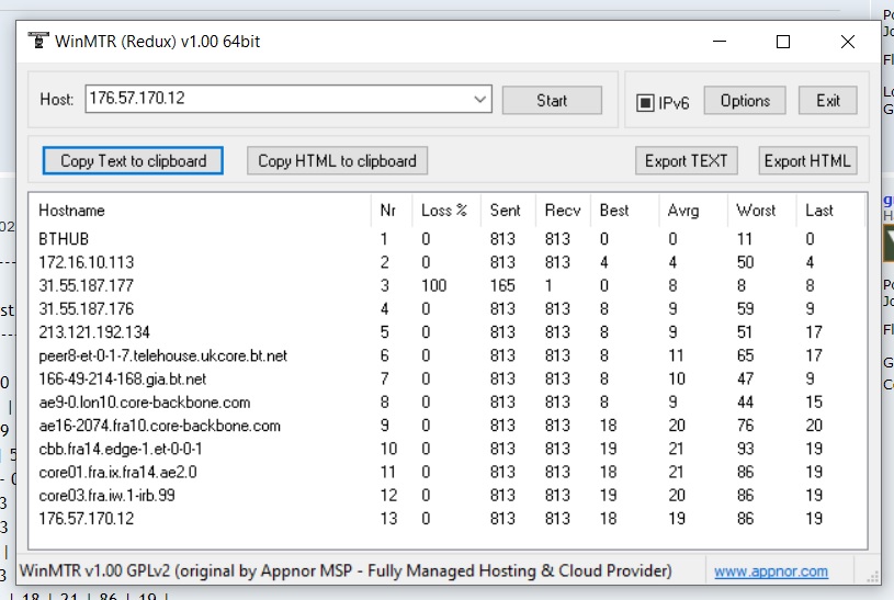 WinMTR v1.00 GPLv2 (original by Appnor MSP - Fully Managed Hosting & Cloud Provider)